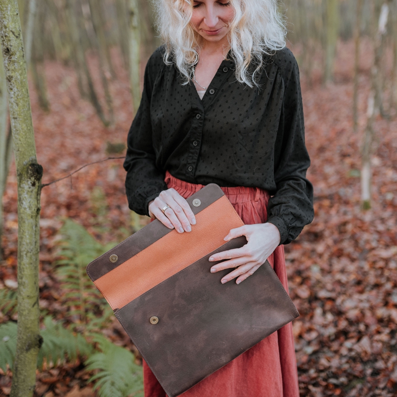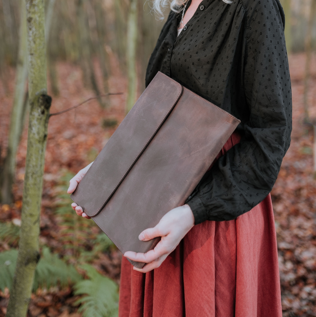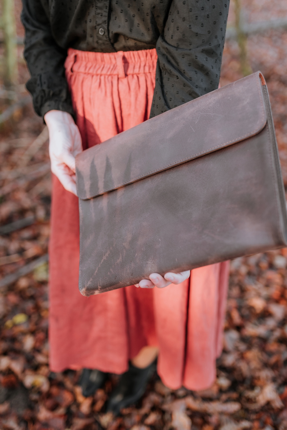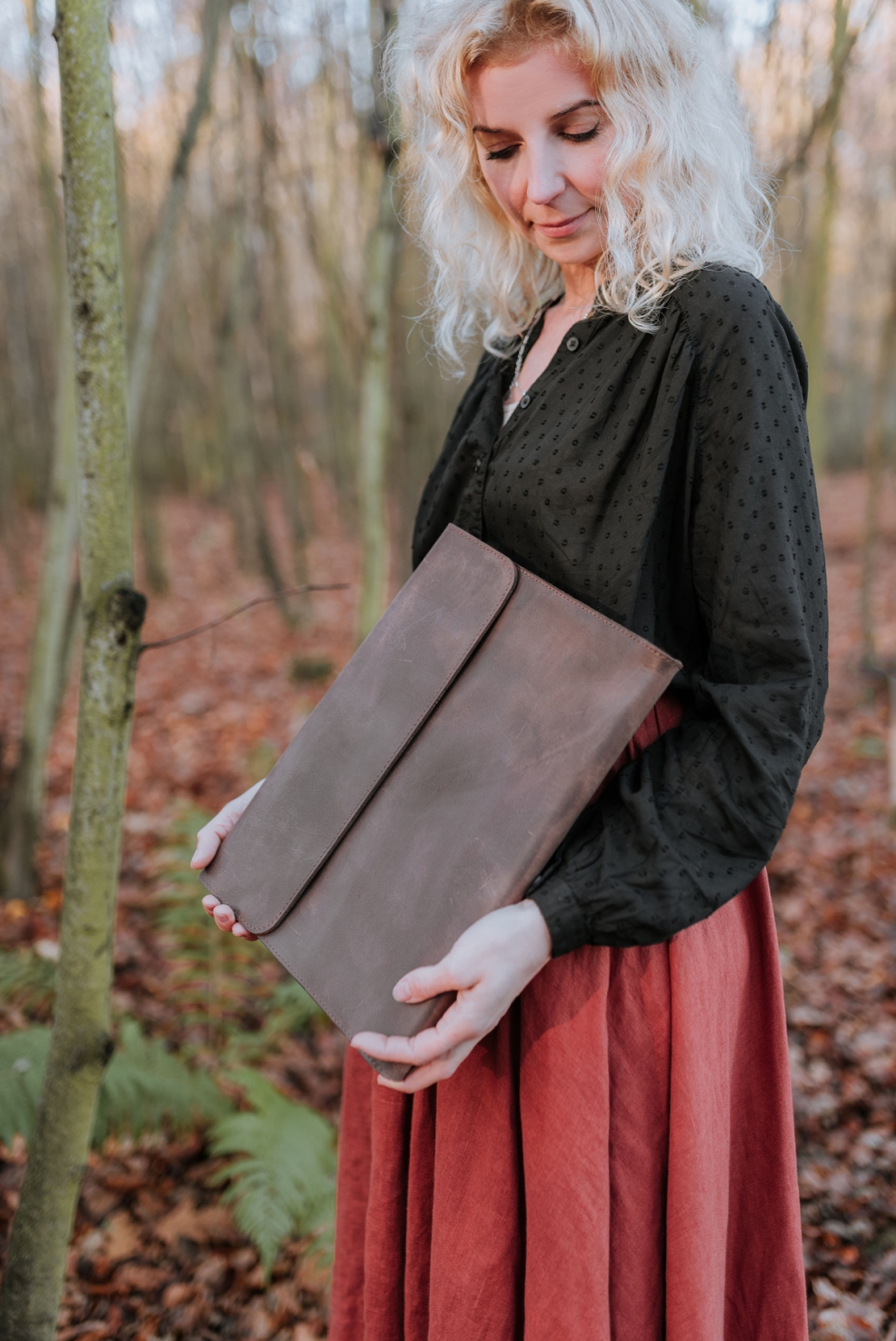 Jeśli cenisz sobie wysokiej jakości akcesoria skórzane, nasz skórzany pokrowiec z pewnością spełni twoje wymagania. Znakomicie nadaje się do przechowywania dokumentów lub urządzeń elektronicznych, np. tabletu czy laptopa. Wewnątrz pokrowiec wykończony jest w skórzanej podszewce, a całość zamykana jest na wygodne zatrzaski. Pokrowiec prezentuje się bardzo elegancko i jest niezwykle praktyczny. Pokrowiec jest dedykowany zarówno dla Panów jak i dla Pań jako dodatek do torby skórzanej lub osobne akcesorium.