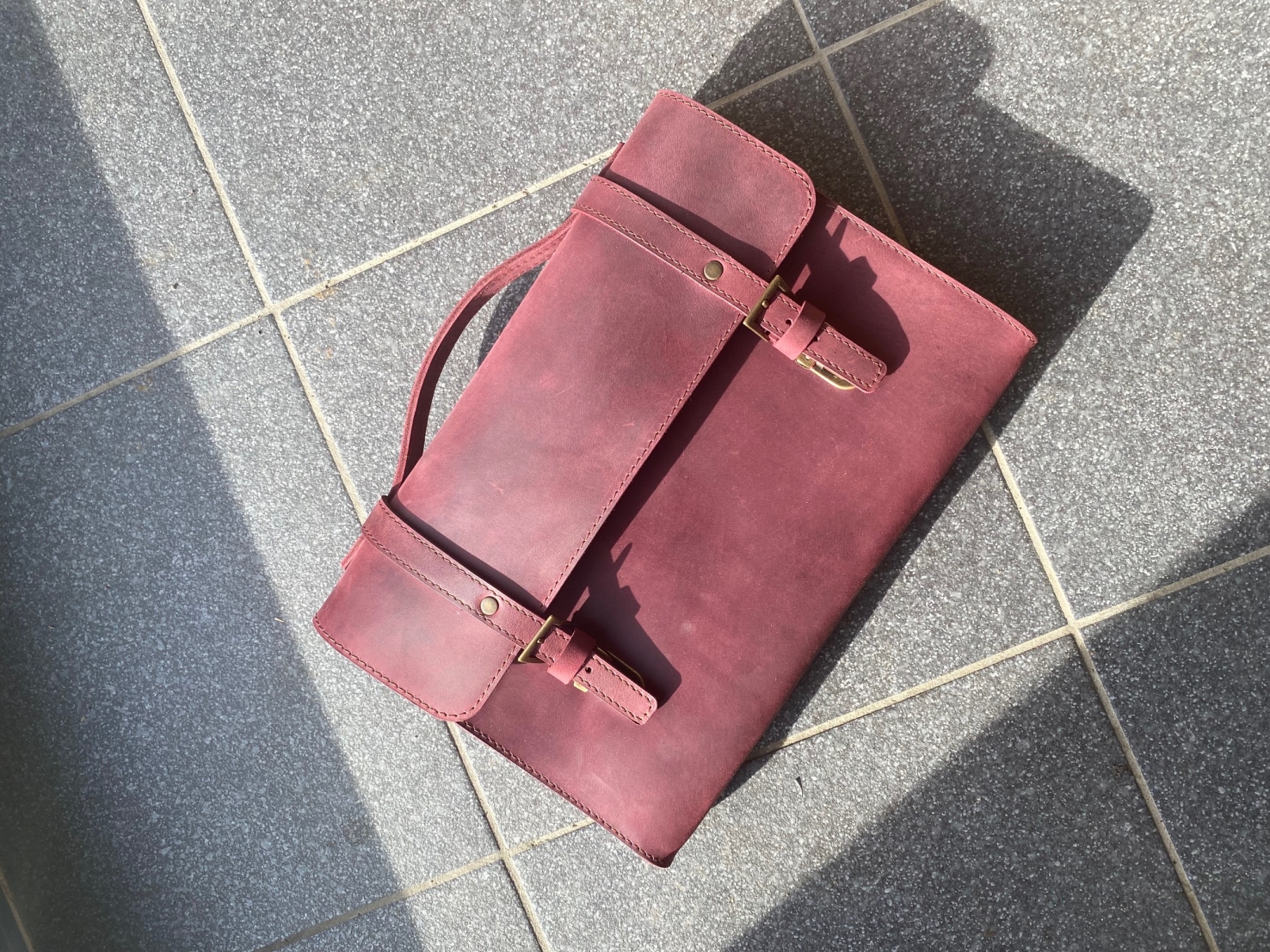 Zewnętrzne wymiary aktówki 33cmx22,5cm. W zestawie dołączamy również wąski pasek na ramię odpinany. Okucia aktówki są w kolorze stare złoto. Pasek na ramię ma 1,5cm szerokości i jest z podwójnej skóry. Na życzenie za dopłatą możemy wyposażyć ją w inny pasek w zależności od potrzeb od 2cm do nawet 3cm, ale w przypadku tej aktówki lepiej się prezentują i pozostają praktyczne wąskie paski ale za to podwójnie skórzane żeby były mocne.