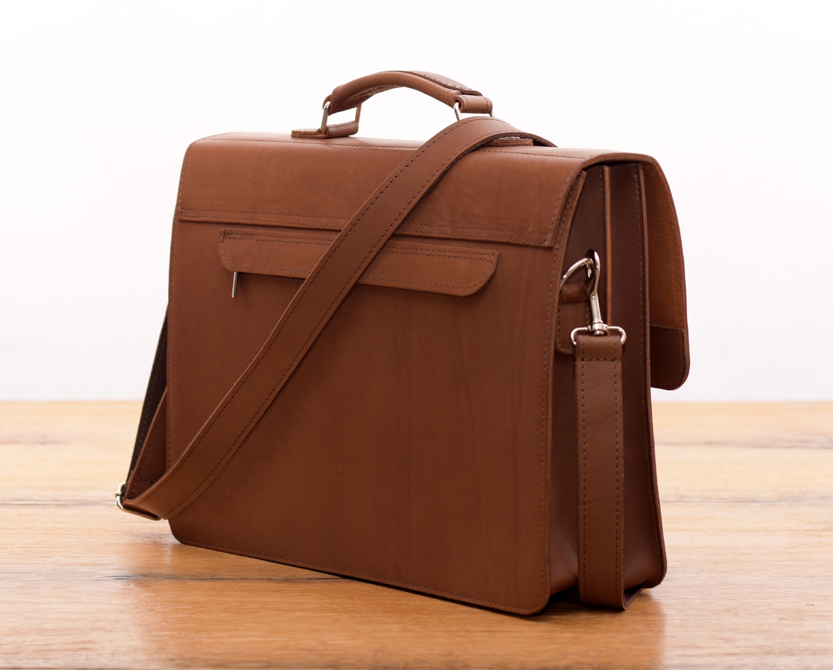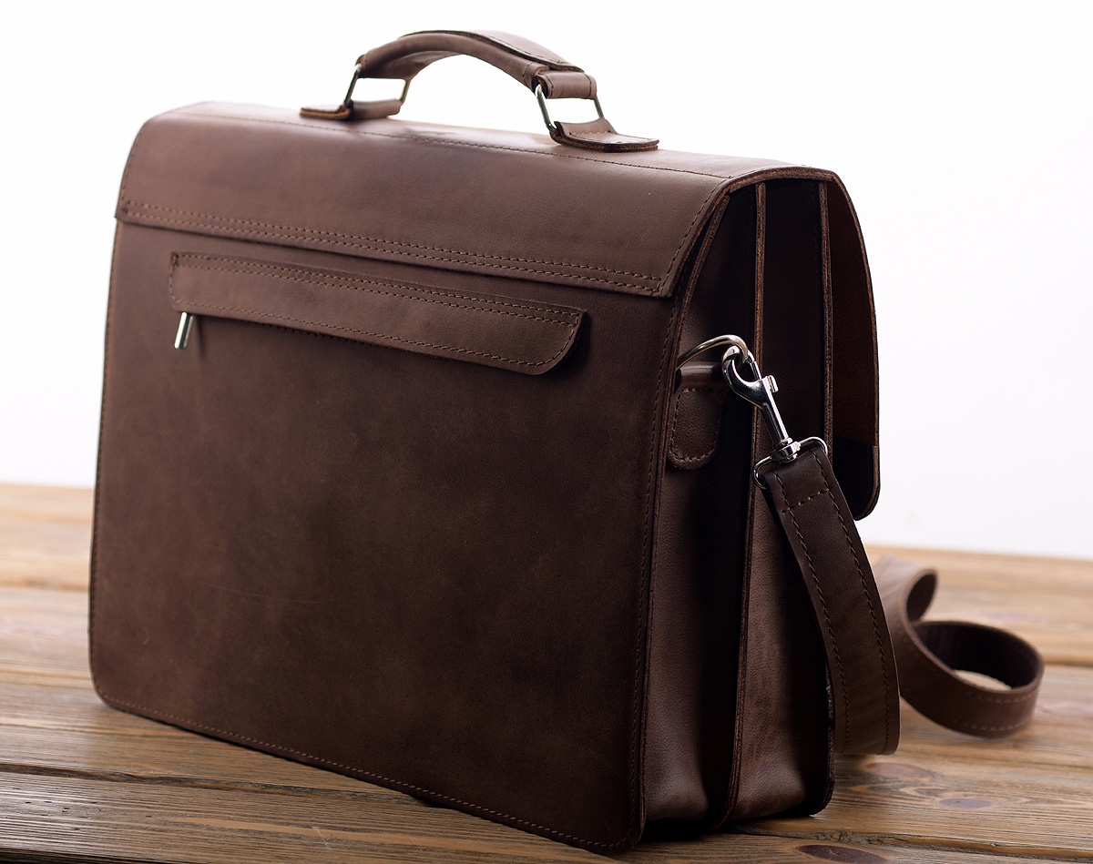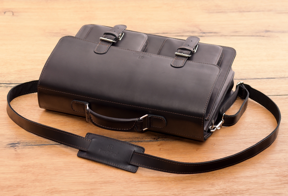 Dark to teczka skórzana wyposażona w dwie komory i dzielący je skórzany przedziałek zamykany. Pod klapą umieściliśmy dwie dodatkowe zamykane kieszenie, a z tyłu jedną zamykaną na zamek błyskawiczny. W środku teczka posiada dodatkowe przegródki na telefon, długopisy czy wizytówki. Dzięki regulowanemu paskowi bez trudu można dopasować teczkę do siebie, a dzięki rączce u góry - jest ergonomiczna i bardzo wygodna.