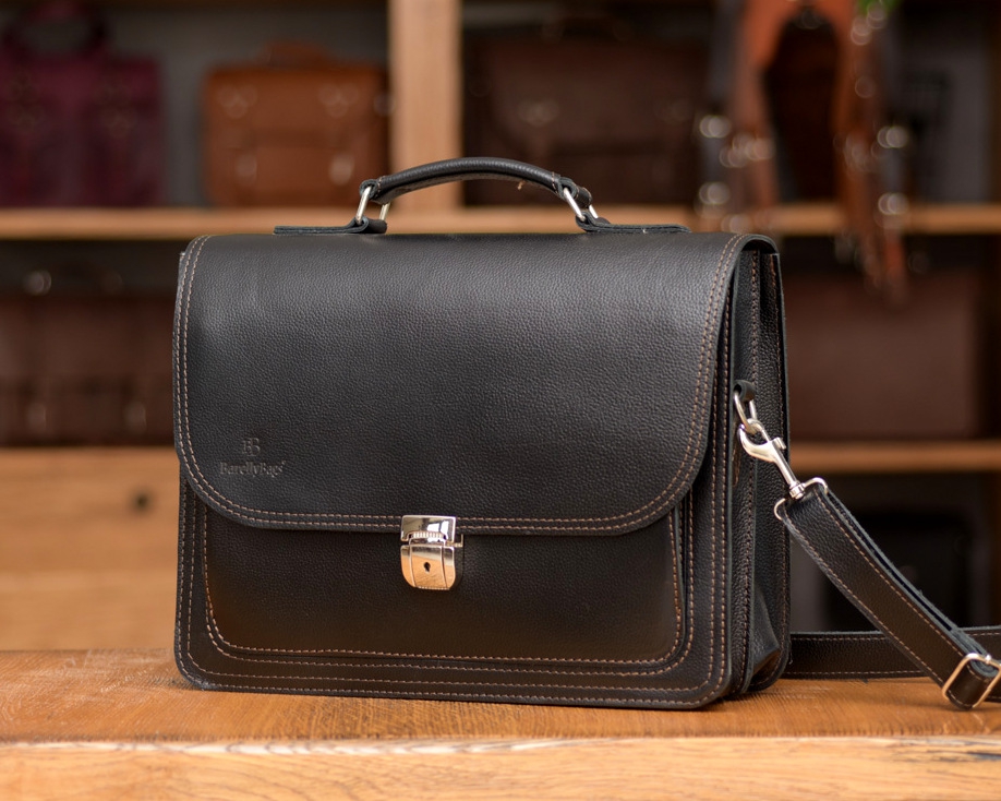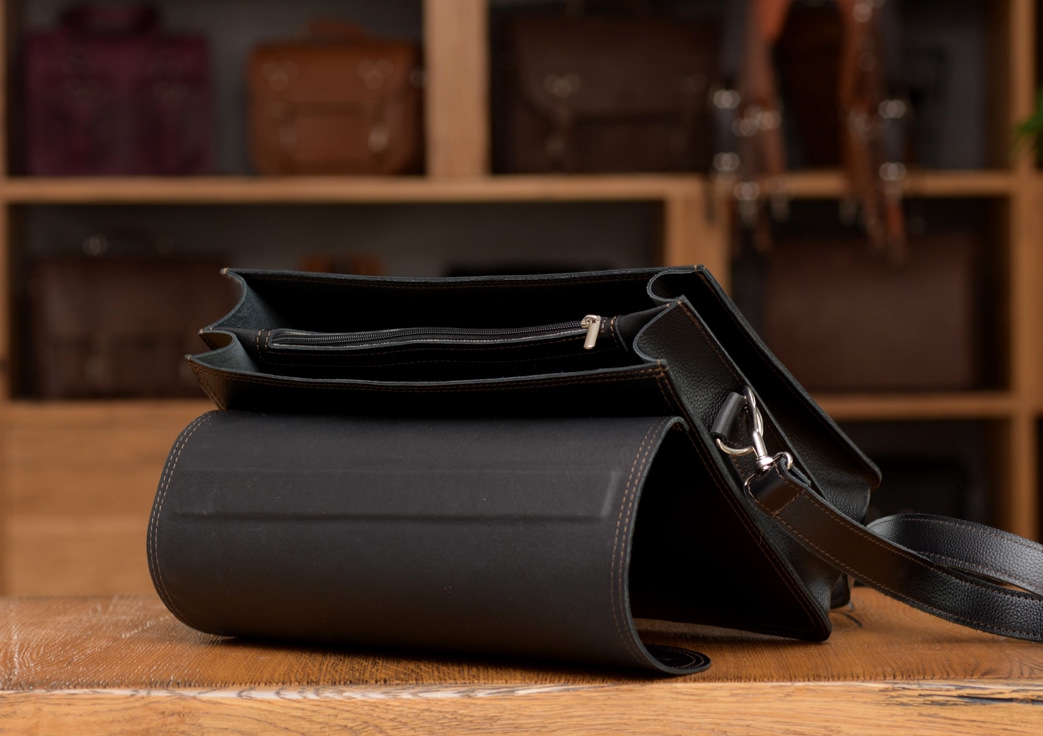 Przedmiotem zakupu jest teczka skórzana Gentle black w rozmiarze XXL 42x31x15cm i kolorze czarnym z czarny obszyciem i trzema komorami.