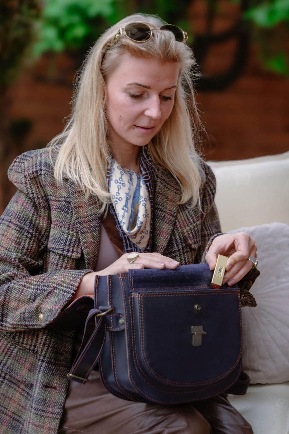 - Na zdjęciach głównych prezentujemy tę skórzaną torebkę w kolorze Indygo (głęboki granat). Skóra jest matowa, garbowana tłuszczowo, Crazy Horse i jest to skóra licowa bydlęca, a wnętrze w skórze licowej koziej (bardzo delikatna w dotyku i śliska)