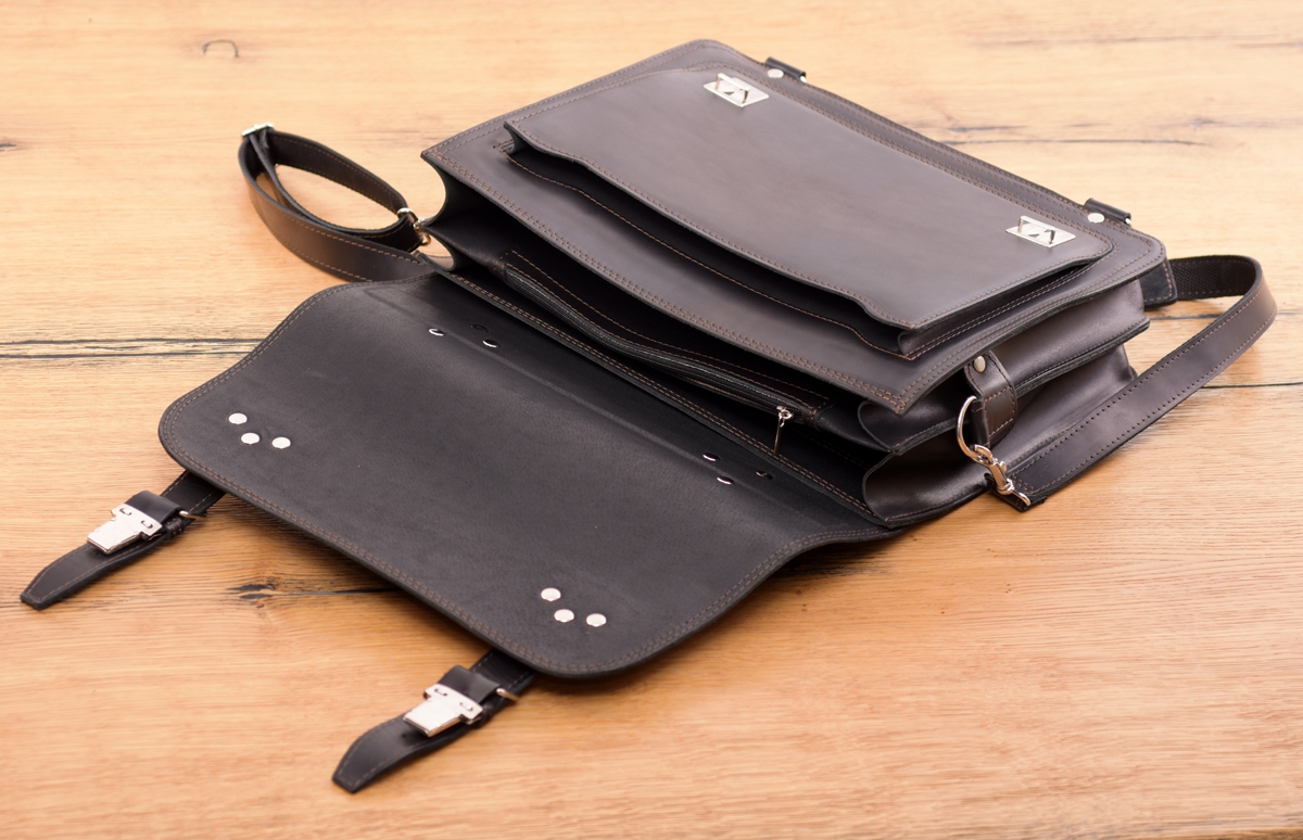 River Slim, tak jak wszystkie nasze teczki skórzane, wykonana jest ze skóry licowej i sztywnej, co gwarantuje jej wysoką trwałość i piękny wygląd. Dla Twojej wygody, w środku teczki, umieściliśmy dwie duże komory oddzielone wygodną, zasuwaną na zamek błyskawiczny przegródką. Klapka teczki zamykana jest na praktyczne zapięcia wsuwane, a pod klapką znajduje się dodatkowa, otwarta kieszeń.