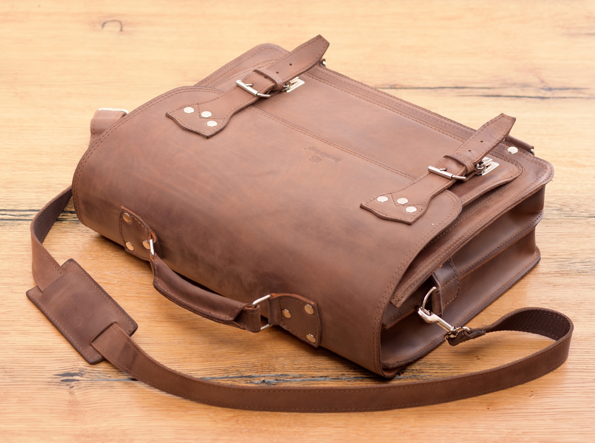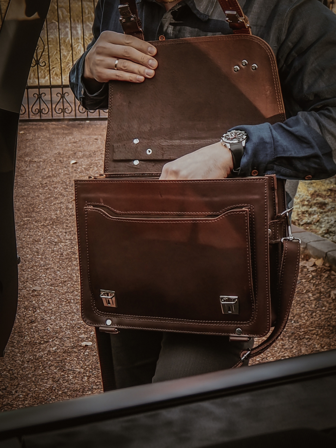 River Slim to model z naszej rodziny produktów River: Big River, Medium River i River 2w1. Teczki skórzane River Slim to produkt nieco węższy od pozostałych - posiada dwie komory. Dedykowane są jako ciekawa alternatywa dla zwykłych, klasycznych neseserów. W jednej komorze możemy nosić laptopa, a w drugiej dokumenty i cały nasz niezbędnik. Tutaj warto wspomnieć, że niektórzy klienci noszą do pracy pudełka na drugie śniadanie, albo szczególnie szeroki grubszy segregator, książkę - wtedy warto rozważyć czy nie lepiej zamiast dwóch symetrycznych komór, wykonać niesymetryczne - jedną 5cm głębokości, a drugą 8-9cm głębokości - wyceniamy to indywidualnie i dzięki temu teczka skórzana staje się jeszcze bardziej funkcjonalna i Twoja :)