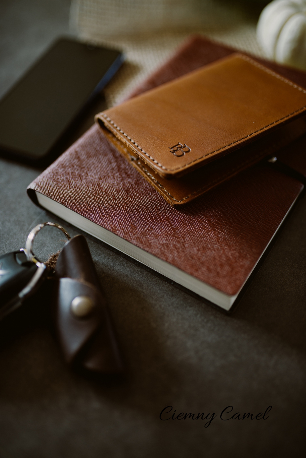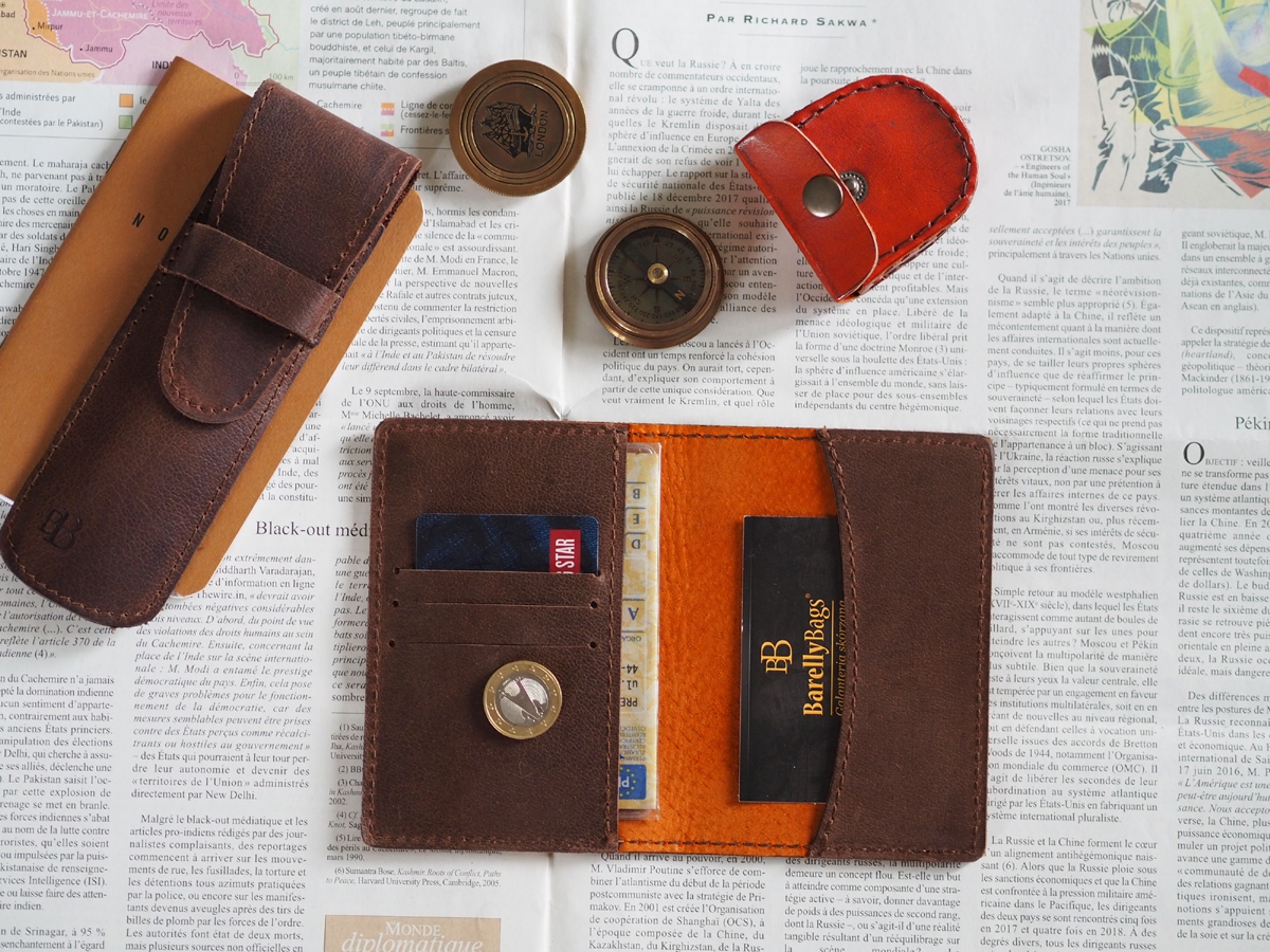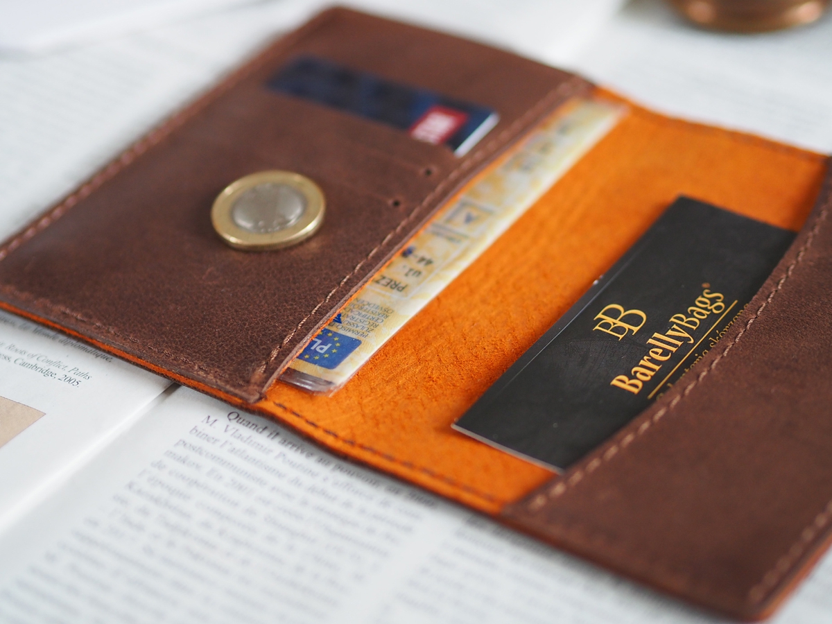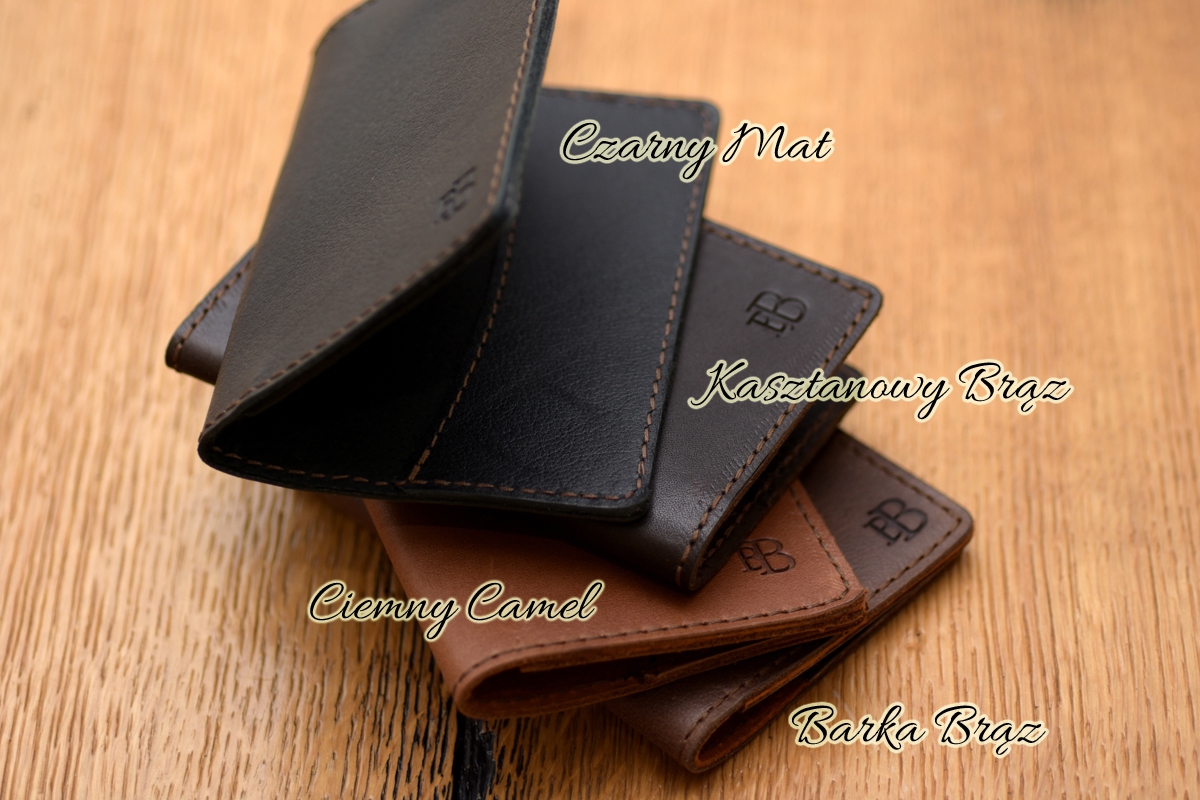 Skórzane etui na dowód rejestracyjny oraz trzy karty, np. te na punkty ze stacji benzynowych i bankomatowe.