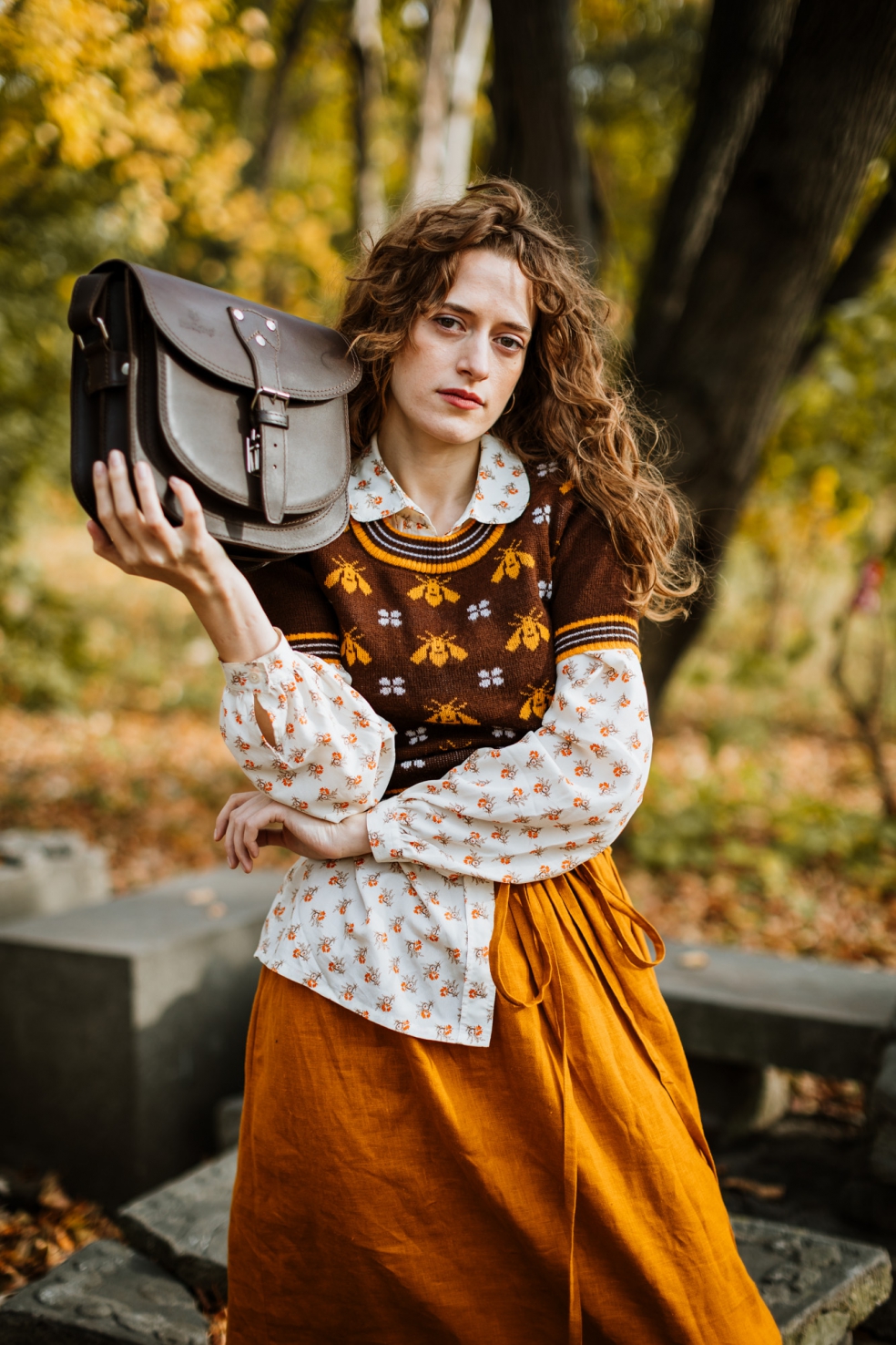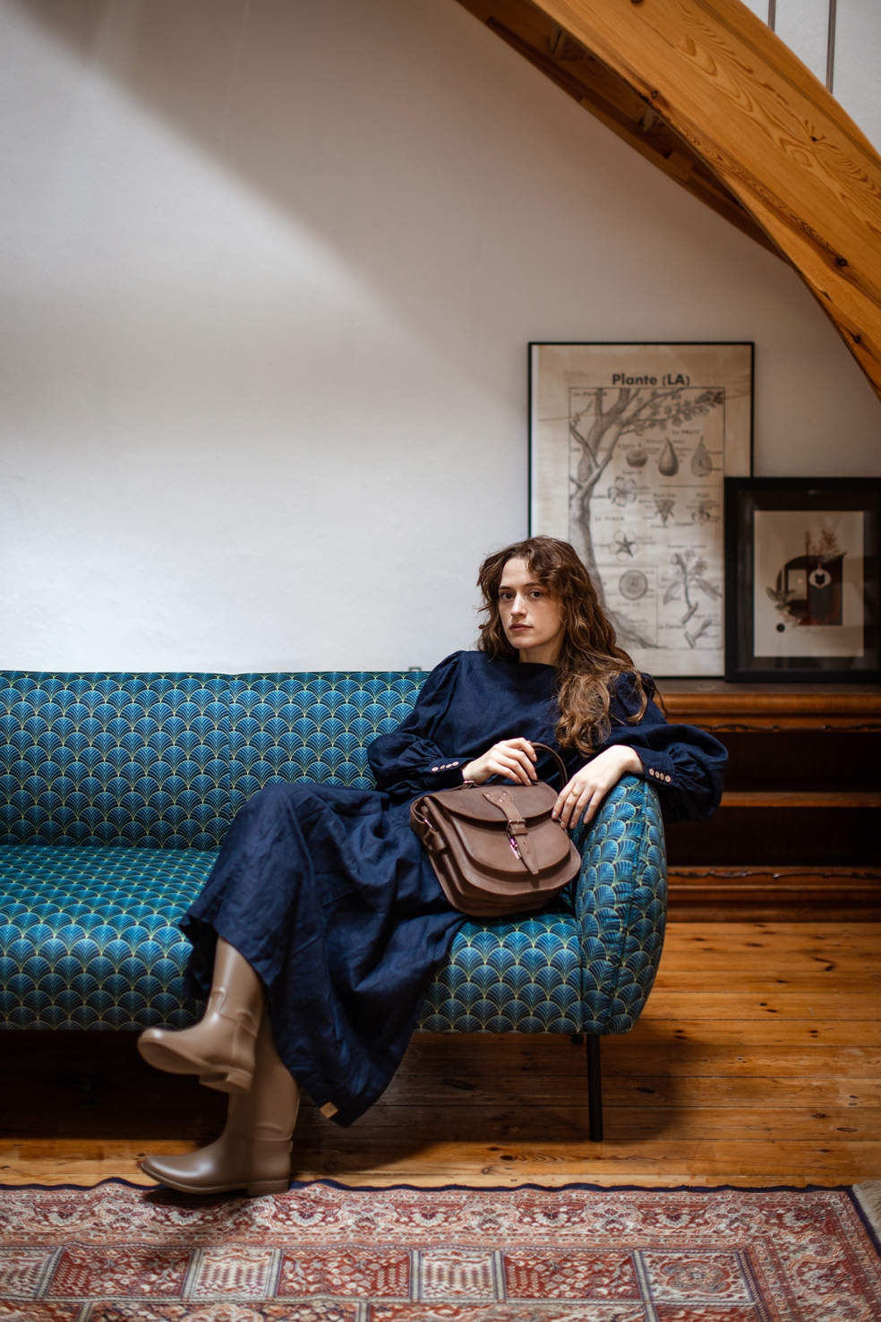 Na zdjęciach z modelką i tym poniżej ukazany jest najmniejszy rozmiar. Tutaj zestawienie koloru brąz barka oraz ciemny camel:
